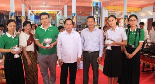 9月24日,适逢柬埔寨传统节日“亡人节”来临之际,柬埔寨王家研究院孔子学院暹粒吴哥高中孔子课堂中文教师和吴哥高中校长任诺特(RINLOT)先生及广大柬文教师30余人,一起来到PRASPROMRATH寺庙参加布施活动,受到暹粒省长钦文松(KHIM BUNSONG)阁下等省政府官员的欢迎。