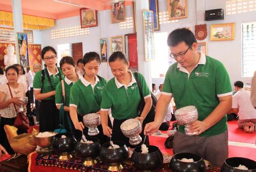 柬埔寨孔子学院暹粒吴哥高中孔子课堂参加“亡人节”布施活动体验异域文化