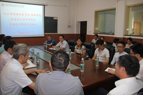 9月23日上午,临床医学院/附属医院首届专业学位研究生开课仪式暨师生见面会在教学楼161教室召开。医学部主任许礼生、学位办副主任王志毅,临床医学院/附属医院院长张志平、党委书记张南华、副院长/学生导师谷翔博士、副院长贾宗林,基础医学院副院长汪鑫出席开课仪式。会议由临床医学院/附属医院科教科科长曾泉主持,该院相关职能部门负责人及新录取的硕士研究生管高鹏等参加。