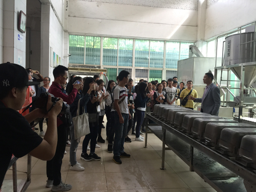 本次活动第一环节是会前食堂后厨参观。柳经理带领与会全体学生代表参观了饮食服务中心蔬菜配送中心、米饭生产中心、三食堂后厨操作间、仓库、留样室等,对我校食堂的统一采购、统一切配的配送运作模式及现代化机器设备都做了详细的介绍,让广大同学们对食堂有了更深刻的了解。