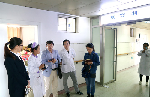 当天下午,医务科还组织院感办、护理部、办公室等相关科室到烧伤科,对病房设施、科室设置、制度流程、无菌措施、标示标牌等方面工作进行了现场查看,对相关问题予以讨论和解决。