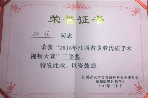 近日,在南昌举行的江西省腹股沟疝手术视频大赛圆满落幕。临床医学院/附属医院普外科孙胜主任表现优异,荣获三等奖,为九江地区唯一获奖选手。
