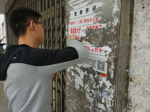 入党积极分子们先是带着小铲子、扫把等劳动工具来到竞知楼五楼台阶清理“牛皮癣”,然后去到各个教室内,他们认真负责,各司其职,将一块块牛皮癣清理下来,让脏乱的墙体又恢复了原有的洁净。随后,又前往竞知楼的各个教室,将各个教室门上、讲台、黑板、桌子上的小广告一一清除,这些小广告粘力较强,清理困难,他们耐心地用铲子铲,用手指抠,直至全部清洁干净,确保还同学们一个洁净的学习环境才离开。