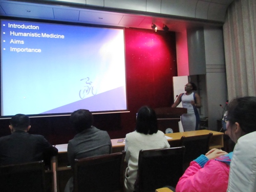 15名中外籍学生围绕医学职业精神、医学人文的国际人道主义、医学创新、医学生誓言内涵及医患共情等主题进行了演讲,演讲者激情满满、观点新颖、PPT制作精细,展现了学生们较高的医学人文素养。在场学生认真听讲,并时时报以热烈的掌声。