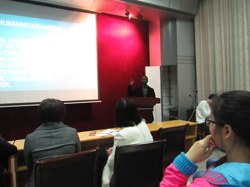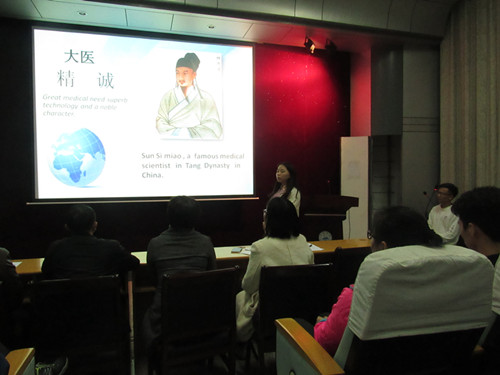比赛开始,主持人宣布比赛规则。接着选手们按抽签所得的顺序进行演讲。在这场中外交流的论坛中,国际交流生主要以“医学创新”为主题来开展演讲。他们认为创新是一种新的方法,是一种设备,也可以说是发明。创新渗透于产品,工序,服务,市场之中,以此阐明了医学创新的重要性,并就国际人道主义和医学人文发表自己的见解。而中方选手演讲内容涵盖对医学生誓言的解读、医学生内涵与思考、职业态度、医患共情及如何成为一名合格的医生等方面,他们引经据典,娓娓道来,展现了当代医学生的风采。在论坛中,中外学生都提到了一个组织——无国界医生。从这个组织入手,选手指出每个人都可成为志愿者,并且呼吁医学生们一起行动帮助世界。