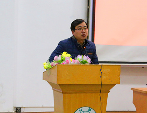 市场营销教研室何庆江老师代表实训指导老师发言,他鼓励同学们要有信心,要坚持完成任务,并建议大家学会团结同学,虚心求教,注意自身安全,培养责任意识。