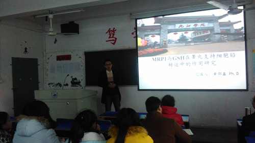 报告会上,车向新院长、王中平博士、曹俊老师分别对其获得立项的国家自然科学基金《IPO8转运RUNX2入核调控成骨分化机制研究》、《Wnt/β-catenin 信号通路表观遗传调控及干预在自闭症发病中的作用研究》、《视黄酸平衡调控hMSCs成骨及成脂分化》的研究内容、研究进展和研究成果进行报告;黄绍鑫博士做了题为《MRP1与GSH在睾丸支持细胞铅转运中的作用研究》的学术报告,对博士期间完成的科研成果进行介绍。