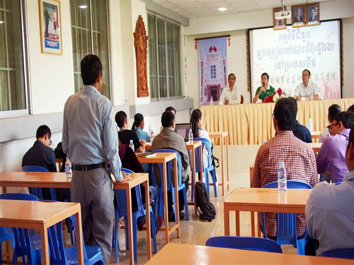 12月2日上午,柬埔寨王家研究院孔子学院赴华冬令营学员行前会议在柬埔寨孔子学院召开。柬埔寨孔子学院院长谢莫尼勒阁下(H.E.CHEA Munyrith)、中方院长夏修龙教授、亚欧大学副校长孙色塔先生(SUN Setha)出席会议,赴华冬令营全体营员参加了会议。