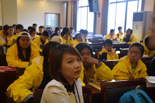 濂溪宾馆二楼会议室进行了简单的见面仪式。虽然国家不同、年龄不一,但各位领队老师和营员们都精心准备了自我介绍,尽管是初次见面,但现场的气氛十分融洽和谐,掌声、欢笑不断。随后,国际合作交流处朱小晶老师等与大家一起在校南大门合影留念。