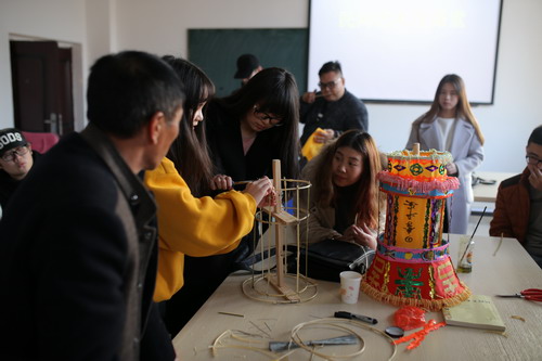 本次活动得到了学院领导的高度重视和大力支持,由艺术学院教师杨四宝组织落实,通过民间艺人课堂指导和互动交流,不仅激发了同学们对民间艺术的浓厚兴趣,掀起了学习、保护、传承民间艺术的热潮,提出在新的时代背景下对其进行创新设计的新课题;并且加强了对同学们动手能力的培养,使他们认识到民间艺术的无限魅力,取得了较好的效果。进一步为艺术学院依托本土视觉文化元素,拓展艺术设计课程教学具有积极重要的意义。