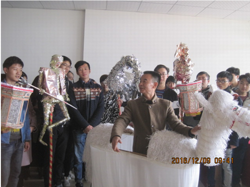 非物质文化遗产陈列馆,给学生演示这种不需要舞台与幕布民间艺术,同学们意犹未尽的沉浸在表演艺术之中。