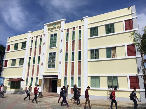 柬埔寨王家研究院孔子学院自2009年成立以来,从无到有,从小到大,从弱到强,不断发展壮大。随着柬埔寨汉语学习人数的不断增加,教学空间越来越不能满足需要。2011年教学楼建成启用后,先后经过多次扩建,此次在原先两层基础上,增加一层,使孔子学院本部的教学楼成为一栋集教学、办公和文化交流为一体的三层独立建筑单元,建筑面积达到1847.5平方米。(葛金良)