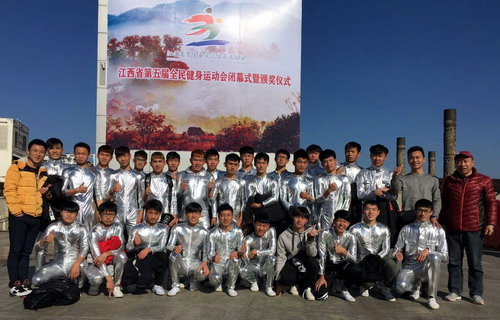 12月17日,由省政府主办,省体育局、省体育总会承办的江西省第五届全民健身运动会闭幕式在婺源县文化广场上举行,体育学院30余名学生在吕冬生老师的带领下参加了闭幕式表演。