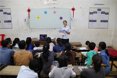 2016年12月31日,柬埔寨王家研究院孔子学院暹粒省吴哥高中孔子课堂在吴哥高中举办了以“话说北京”为主题的中华文化传播活动,孔子课堂负责人刘振老师和吴哥高中孔子课堂30余名初级班学员参加了此次活动。