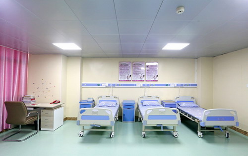 产科病区配备有VIP病房,VIP套间病房面积约为40平方米,舒适、洁净程度达四星级酒店标准,VIP病房普通间约20平方米,均设有宽带网络、有线电视、冰箱、立式空调、微波炉、衣柜、隔帘等,有独立卫浴,24小时供应热水,卫浴内装配立式扶手,避免孕产妇因起立眩晕而导致滑倒。