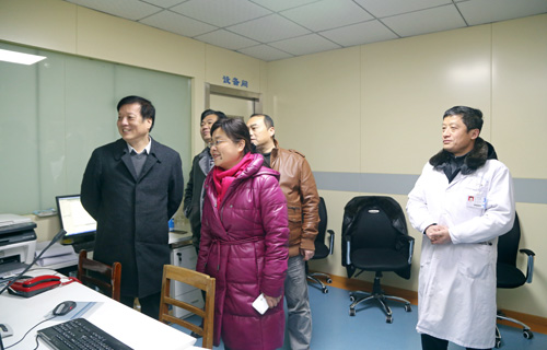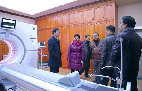随后,钭院长一行在张院长和刘书记等的陪同下,参观了临床医学院/附属医院门诊,普外、妇、产、儿病区,产房,CT室,介入室,磁共振室,24小时便利店,西院放疗科、乳腺科、休闲庭院等处。钭院长看到临床医学院/附属医院256排CT、直线加速器、磁共振等一批精尖设备高效运转,门诊和住院环境面貌焕然一新,非常感慨,并称赞临床医学院/附属医院就医体验改善突显人性化管理,教学科研获长足进步,优质服务彰显特色,“以病人为中心”服务理念贯穿始终。