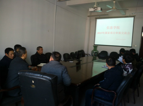 为了加强学科建设,提升学院教师国家自然基金项目申报中标率,2月14日下午,信息学院在文友楼514举办了国家自然科学基金项目申报交流会,参加本次交流会的有信息学院院长邓安远、副院长邓长寿、2017年申报国家项目的负责人及历届获得项目资助的教师,会议由邓长寿副院长主持。