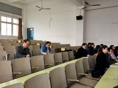 此外,本学期还特别组织近三年新引进教师跨学科集中听取资深教授的公开示范课,2月15日,开课第一天,教研科安排7名博士教师听取了生理学与病理生理学何巍副教授的第一课,车向新院长、余朝阳书记和郑美蓉副院长也到场听课。课后在华文楼105会议室召开了听课评议暨新引进教师座谈会。新引进教师谈了自己的听课和学习体会,表示受益匪浅,何巍老师也毫无保留的传授了自己的授课真经,告诫新老师要用心教学,多向资深教师学习,将自身专业优势融入教学。