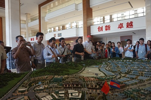 汉语中心师生的到来受到西港经济特区管委会李超主任的热烈欢迎和盛情接待。走进经济特区的综合服务大楼,特区员工结合沙盘模型为学员详细讲解了经济特区的规模和功能分区,使学员们对特区有了初步的认识和了解。