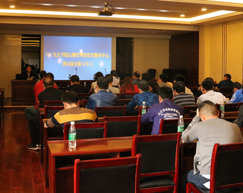 4月20日下午,后勤管理处饮食服务中心在濂溪宾馆会议室组织供应商开展学习与交流活动。本次活动由后勤管理处饮食服务中心副主任许谊源主持,饮服中心特邀濂溪区市场与质量监督管理局专家为供应商代表做专题讲座;后勤管理处质检办有关同志、供应商代表参加本次学习与交流活动。