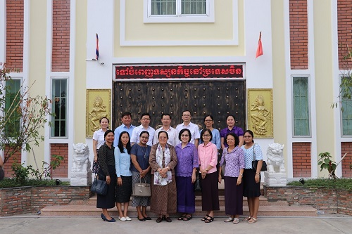5月2日下午,柬埔寨王家研究院孔子学院汉语官员班赴华行前会议在柬埔寨王家研究院孔子学院四楼茶文化交流中心召开。柬埔寨王家研究院院长克洛媞达(Khlot Thyda)院士、柬埔寨王家研究院孔子学院院长谢莫尼勒(H.E.CHEA Munyrith)阁下、中方院长夏修龙教授、院长助理陈晶雯老师以及即将赴华的汉语官员班学员参加了本次会议。
