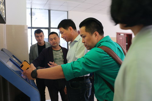 俞来德一行首先参观了艺术楼东楼音乐舞蹈专业的相关教学设施,重点察看了琴房的门禁系统及舞蹈房、数码电钢教室、MIDI音乐制作室及民乐合奏室、管弦乐合奏室等教学室验室。参观中,俞书记一行对我校的艺术大楼及相应硬件设施的配备表示称赞。