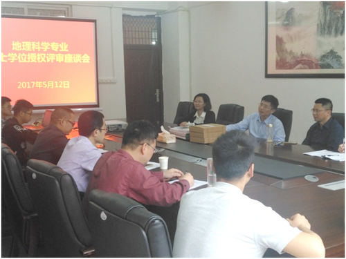 5月11-12日, 举行了新增本科专业学士学位授权评估会议。12日上午,地理科学(师范类)专业申请学士学位授权评审师生座谈会在旅游与国土资源学院召开,来自江西师范大学的评审专家马定国教授参会,旅游学院院长李松志教授、副院长孙冬英教授、教务科史术光科长以及部分教师和学生代表参加了座谈会。
