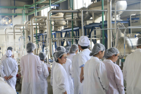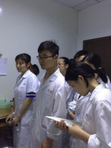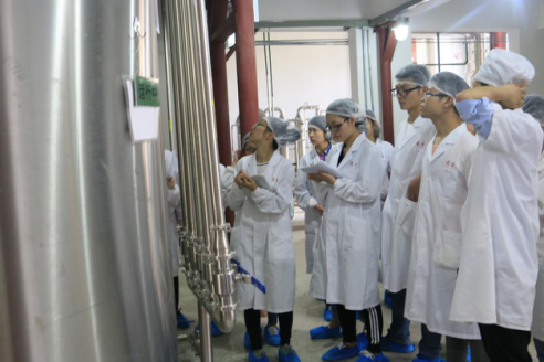 本次见习分为三个小组,分别对液体制剂车间、综合提取车间及仓库、质检、研发实验室进行分批见习。液体制剂车间由陈宣耀副主任负责讲解,主要介绍了中药合剂、中药口服剂、糖浆剂等中药制剂的有关工艺及质量控制。综合提取车间由陈亮亮副主任带队,介绍了煎煮法、渗漉法制备浸出制剂的工艺流程及纯化水的制备工艺。仓库、质检和研发实验室分别由邓志强和江翠玲负责,介绍了包括原辅料的进厂和领用、取样、中药材的辨认等相关知识,同时对样品的留样、检验及主要研发仪器设备进行了详细的讲解。在见习过程中,同学们认真听讲,不时做着记录,并提出各种问题,企业负责人都进行了详细的解答,取得了良好的教学效果。