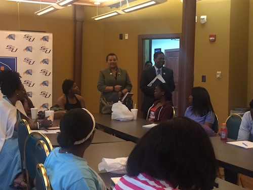 美国当地时间5月26日,萨凡纳州立大学孔子学院于校长办公楼会议室举行了“2017大学生赴中国夏令营”行前培训结业典礼,萨凡纳州立大学校长多齐尔、孔子学院外方院长布拉德、中方院长罗其娟、带队教师人文艺术学院艺术系助理教授托妮、行前培训教师钟佳艺及全体参营学生出席典礼。
