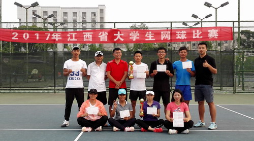 2017年江西省大学生网球比赛5月23日至28日在华东交通大学网球场进行,我校体育学院网球校队组队参加了本次比赛,并获得男子团体亚军、女子团体第三、男子双打冠军、男子单打亚军、男子单打季军、混合双打季军等优异成绩。