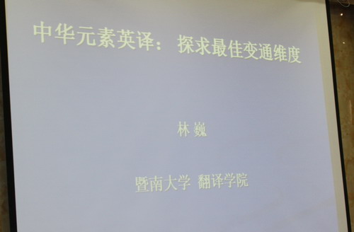 林教授在报告中指出,中华元素不同于中国元素,它有着特殊的内涵和变通的表达方式。“变通”不同于传统意义上的“衔接”,而翻译则需求得其维度中的最佳状态。这一过程中出现的除语言现象外,更多的还是文化与思维的问题。翻译固然不同于创作,但却需要“创造性忠实”,而最高境界的忠实则是收放自如的变通处理。