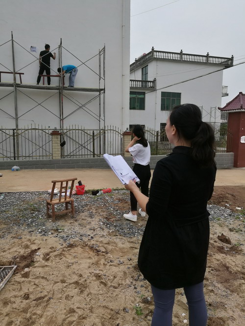 由于彩绘时间短、绘画面积大、任务重。5天里师生克服高温、户外、高空等因素在确保安全情况下把所有的热情投入到紧张的彩绘当中。师生们顶着炎炎烈日,每天在户外工作长达12个小时。 画出一幅幅反映着武宁东山独特的地理风情风貌的彩绘作品。