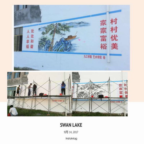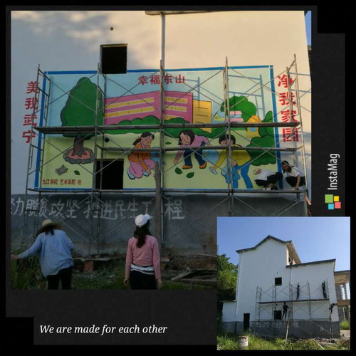 精准扶贫点武宁官莲乡东山村开展精准扶贫。为推进打造“庐山西海滨湖第一村”装扮新农村建设,艺术学院彩绘在行动。