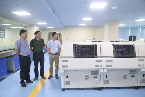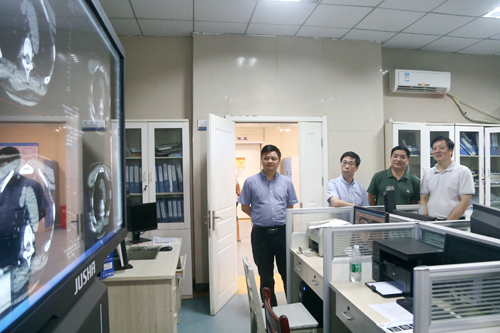省肿瘤医院温晓明书记一行,还在临床医学院/附属医院领导陪同下,参观了临床医学院/附属医院256排CT室、影像集中阅片室和检验科流水线等处,温书记对临床医学院/附属医院优质的医疗服务和先进的医疗设施表示高度赞扬。