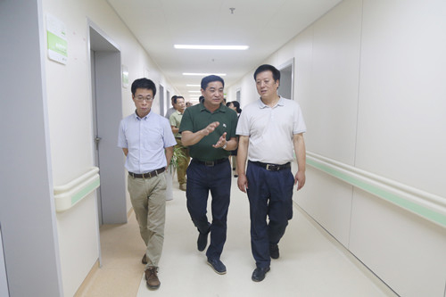 座谈会后,张院长一行到省肿瘤医院在建项目的施工现场,重点参观了该院新大楼已装修成型的病区走廓、电梯前厅、护士站、医生办、病房标准间以及在建的手术室等处。张院长一行详细询问了在建大楼的设计布局、装修材料、设施功能等情况。