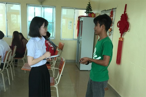 孔院志愿者教师谢诗蕾对学生陈博进行采访