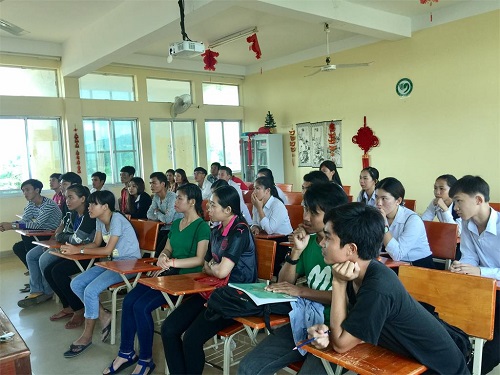 学生们认真聆听孔院志愿者教师王涛的讲座