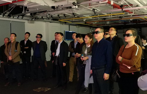 期间,梅教授一行参观考察了上海交通大学虚拟现实VR创新教育实验中心、上海工程技术大学数字媒体体验展示中心、上海曼恒虚拟现实VR交互体验馆,从虚拟现实技术进展到VR教育应用、历史建筑保护、新闻传播、文创产业,以及VR应用实验室的设计组成等多角度、全方位调研了新兴的虚拟现实技术对教育未来发展的变革力量和促进作用。