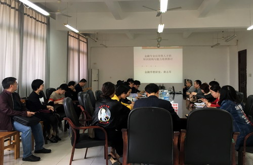 3月30日下午,经管学院在义丰楼620开展了第二十五期学术沙龙活动,本期沙龙由金融教研室黄志军副教授主讲,以“金融专业应用型人才的知识结构与能力培养探讨”为主题的学术沙龙活动。金融教研室全体教师、学院博士以及部分有兴趣的老师参加了此次沙龙活动,活动由金融教研室曾祥师主任主持。