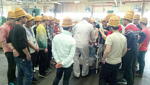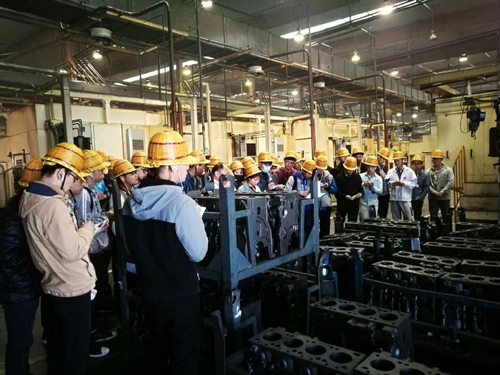 根据不同的专业特点,同学们参观了铸造车间、凸凹模具、再造车间、大马力机加工、试验站、总装车间、轴瓦等车间,学习了4H缸体、轴类生产、发动机生产加工、车身生产加工和各个零部件生产的技术指标及工艺流程等,并认真做了笔记。在实习过程中,同学们结合理论知识就实际生产过程中的疑问虚心请教技术人员,技术人员耐心地进行了解答。
