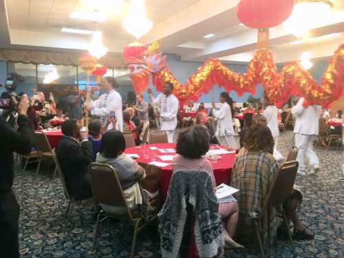 庆典结束后,不少来宾主动向孔院老师咨询汉语课事项,要求预定下学期的课程和夏令营活动。来自纽约的热心市民梅尔文·迪恩先生(Melvin Dean)说,他一直对中国文化着迷,今天在机场转机的时候看到孔院周年庆的消息,特意赶来观礼,果然不虚此行。当地某地产公司经理约瑟夫先生(Joseph)告诉孔院老师,他非常喜欢中国文化,学习汉语是他最大的业余爱好,今天有幸担纲龙珠手、见识这样精彩的中国文化盛宴,对于以后的汉语学习很有帮助。(付正芸)
