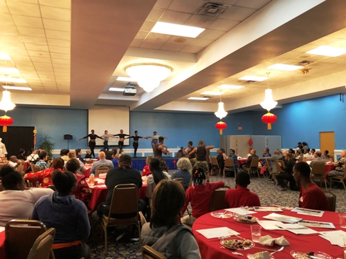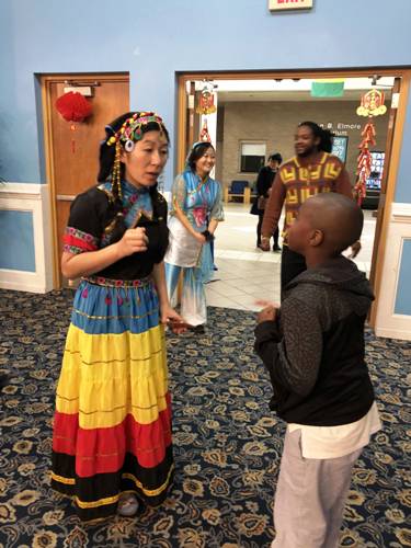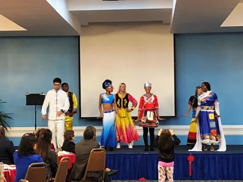 的黑曜石舞蹈团为来宾献上了一曲动感十足的开场舞。四名孔子学院的学员身着红色唐装,扭起了中国时下流行的《海草舞》,许多观众在台下跟着一起摇摆。几名身着中国少数民族服饰的孔子学院学员,伴着《爱我中华》的旋律,上演了一场别开生面的少数民族风情秀,缤纷的服饰在不同肤色的映衬下,显得格外绚丽多姿。著名旅美小提琴家犹娜女士为观众献奏了知名曲目《秘密花园》和中国民歌《茉莉花》。专程赶来祝贺的亚特兰大中国舞蹈社李凯妮女士带来了《苗家姑娘》和《扇舞丹青》,还与黑曜石舞蹈团共舞一曲,象征东西方文化交融。