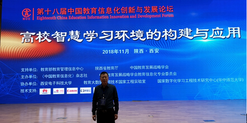 在论坛上,西安电子科技大学校长、国家数字化学习工程技术研究中心主任、教育大数据应用技术国家工程实验室主任杨宗凯教授作了《深度融合信息技术,全面推进教育信息化2.0》的报告,西安交通大学副校长郑庆华教授作了《人工智能大数据驱动智慧教育》的报告,教育部教育管理信息中心副主任曾德华作了《从全国一体化在线政务服务平台建设看互联网+教育大平台的发展方向》的报告。主题分论坛围绕“人工智能与未来教育”、“区域教育信息化发展与教育治理”、“高校智慧学习环境的构建与应用”、“中小学智慧教育的思考与实践”、“信息技术发展与职业教育体系变革”、“信息技术支撑下基础教育的创新与发展”、“互联网+条件下的人才培养”等七个议题,全方位、多视角探讨教育信息化热难点问题。梅龙宝教授就高校信息化建设与相关专家进行了广泛交流,现场观摩交流2018年全国教育信息化应用成果展示活动。