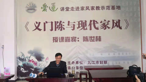 陈教授从义门陈义居及其历史、义门陈家法的地位、义门陈家法之于当代家风建设的启示、关于当代家规家训的建议等方面做了讲解,内容丰富详实,讲述精彩动人,极大地引发了听众对江州义门陈的浓厚兴趣。