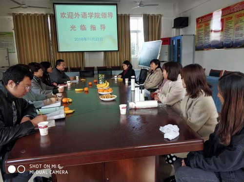 为了落实学校安全稳定的相关精神,了解在外地实习学生的生活和学习情况,2018年11月22日,外国语学院院长韩琨,副院长罗其娟,教务科科长王伟、英语教育教研室副主任赵宋文,刘瑶老师一起赴彭泽县博吾学校,渊明小学和湖口县二中三个实习基地看望实习生。