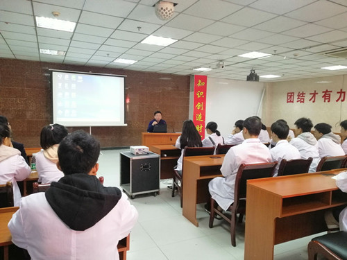 见习活动的第一项内容是由共青城新市医院医务科的淦主任带领同学们参观医院门诊部各科室及住院部内、外科、儿科、精神科等科室,凎主任对各科室的相关情况一一进行了介绍,并不时解答同学们提出的问题,使同学们对基层医院的架构和功能有了一个初步的了解。第二项见习内容是听课,在医院学术报告厅,先由医务科淦主任作了“如何成为一名优秀医学生”的报告,凎主任是一位受人尊敬的老医生,他用自己一生行医的切身体会告诉同学们在学校期间应该如何进行有效的学习、有效的沟通,如何成为一个合格和优秀的医生“胚子”,向同学们强调了基础工作者的重要责任,强调了医学基础知识学习的重要性,医学相关法律法规学习的重要性,凎主任最后希望同学们不仅要努力学习,更要树立为人民服务、为基层服务的思想。第二堂课由共青城新市医院公共卫生科的闵主任讲授基层医院医生如何开展基层公共卫生服务,闵主任向同学们详细地讲解了“国家基本公共卫生服务规范”中的各个项目,引导同学们重视和关注基层公共卫生服务,更好地为基层老百姓服务。