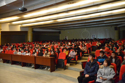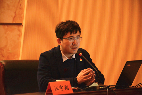 主讲人汪宇翔详细解读了第五部宪法修正案的具体内容,他认为,将“党的领导”从宪法序言写入宪法条文,对完善党的领导有着积极的意义,同时也顺应了时代的要求。落实修宪举措重在建立完善的合宪性审查机制,树立公民的“权力在民”意识。尽管正值寒冬,但讲座现场的近300名师生热情不减,不时响起阵阵掌声。