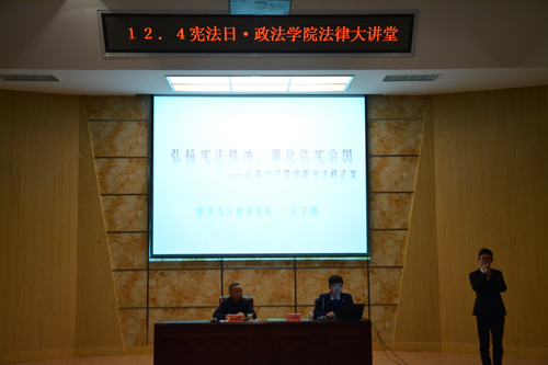 八里湖校区综合楼报告厅举办了“弘扬宪法精神,强化依宪治国”专题宪法讲座,此次讲座由政法学院副院长李德恩主持,学生科团委老师和同学们积极参加。