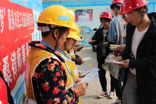 现场咨询结束后,老师和同学们前往建筑工地开展普法宣传工作,与在场的农民工进行了亲切的交流,认真聆听了农民工的诉求与问题并予以解答。通过发放与劳动保障密切相关的法律法规宣传,进一步加深了他们对劳动合同、公共安全等方面的认识。