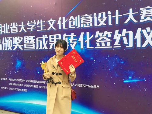 12月13——14日,由我校艺术学院教师吴畏带领艺A1572班学生郭晓蒙,赴湖北武汉领取由湖北省文化和旅游厅、湖北省教育厅等7个单位主办的“第五届湖北省大学生文化创意设计大赛”奖项,并完成获奖作品暨成果转化签约仪式。
